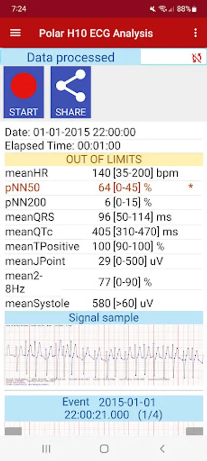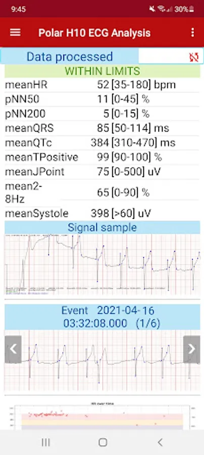 The Polar ECG Analysis can record the raw ECG signal from sensor and perform statistical measurements of wave intervals.
