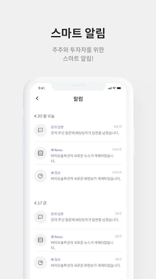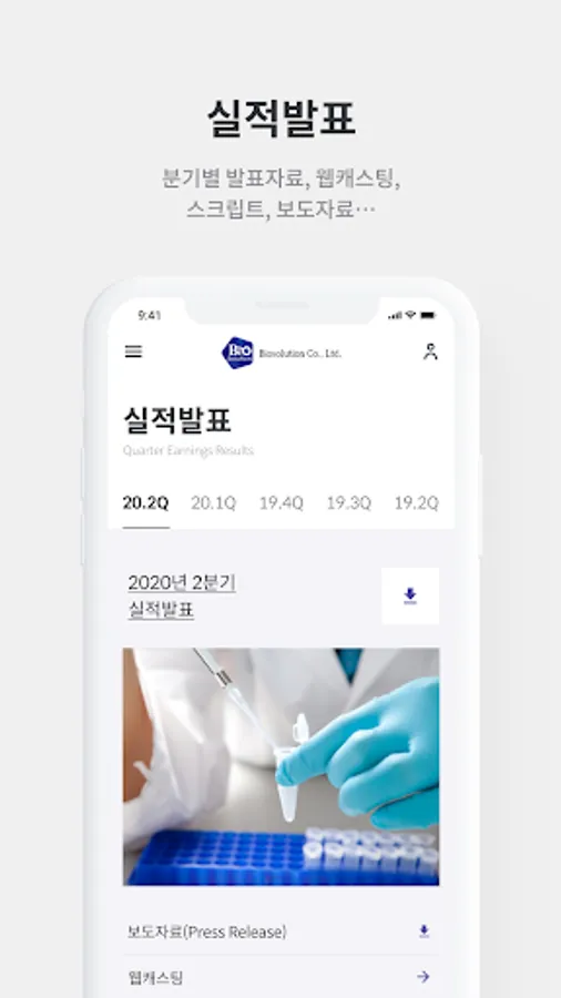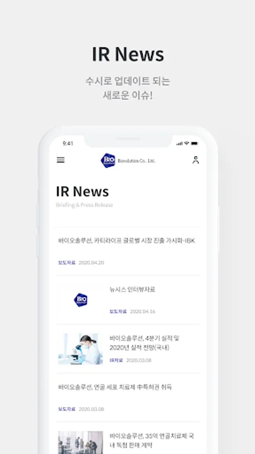 This app provides the latest IR information such as real-time stock price, IR schedule, quarterly earnings release data, various IR news, major business reports, financial information, disclosure, and IR contact information.