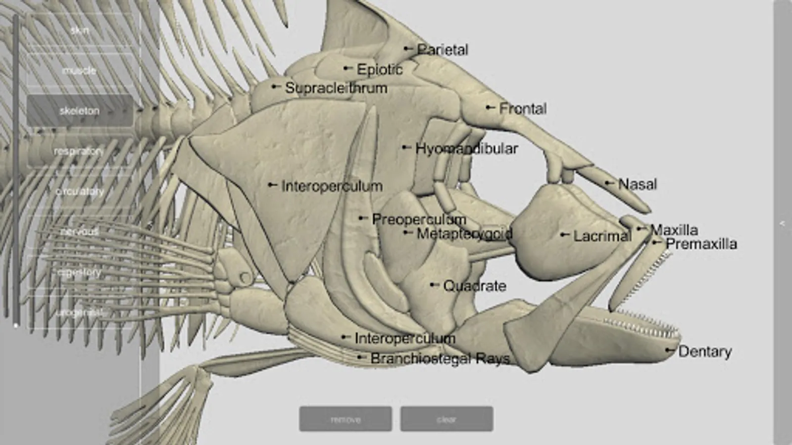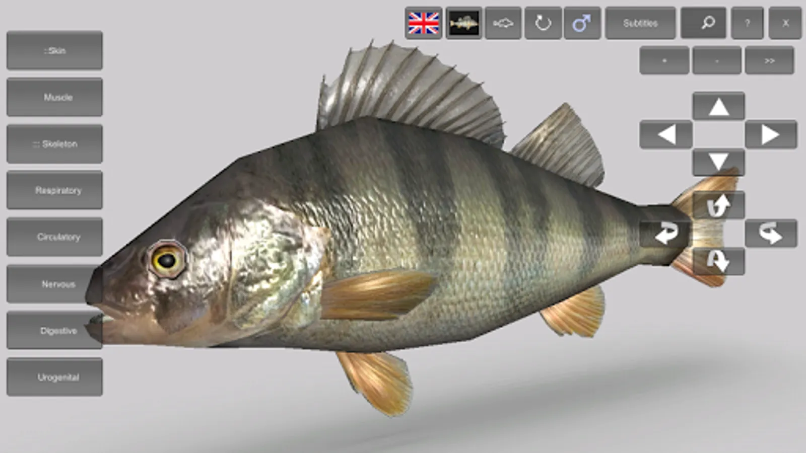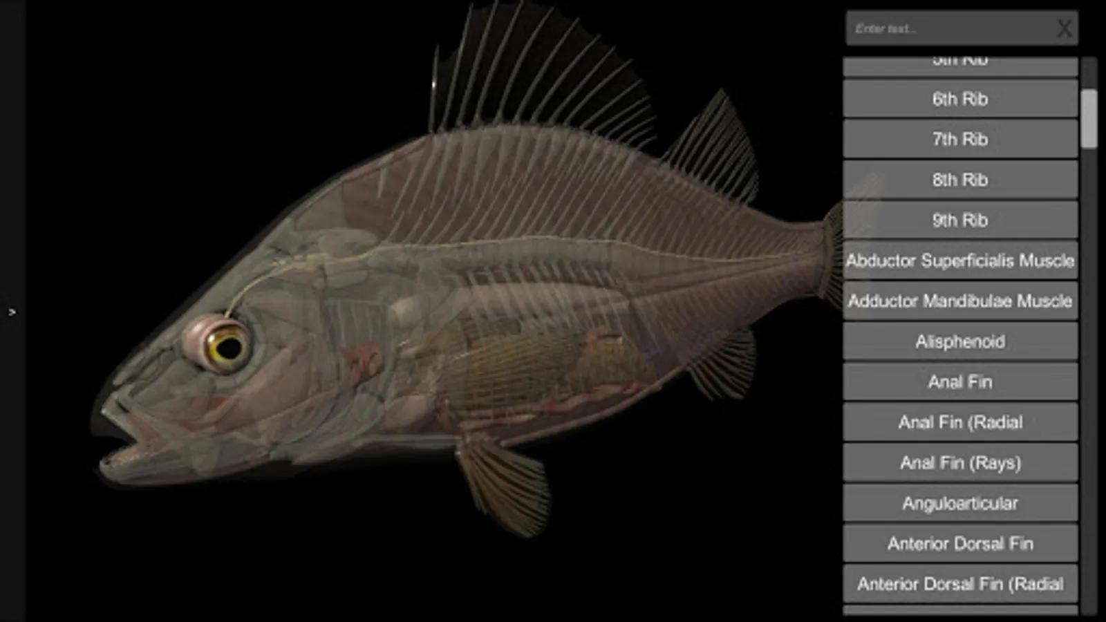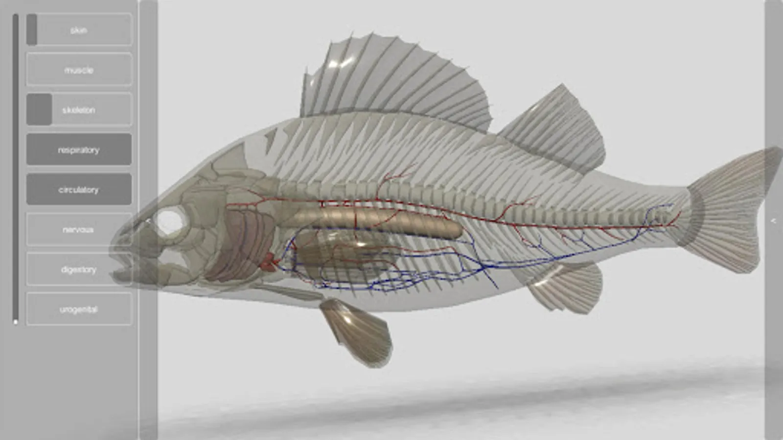 Biosphera's 3D Fish Anatomy App is an interactive 3D model of a Perch. This learning tool allows the user to view the anatomy of the systems of a teleost fish either one by one or in any combination of systems. It allows view from all angles and multiple zoom levels.