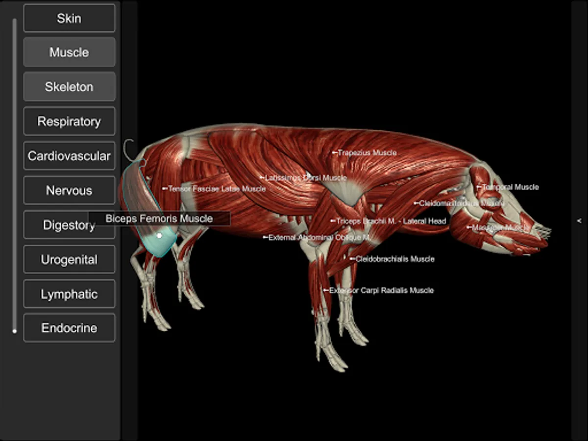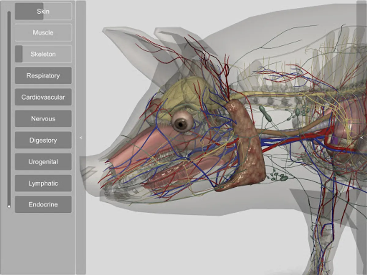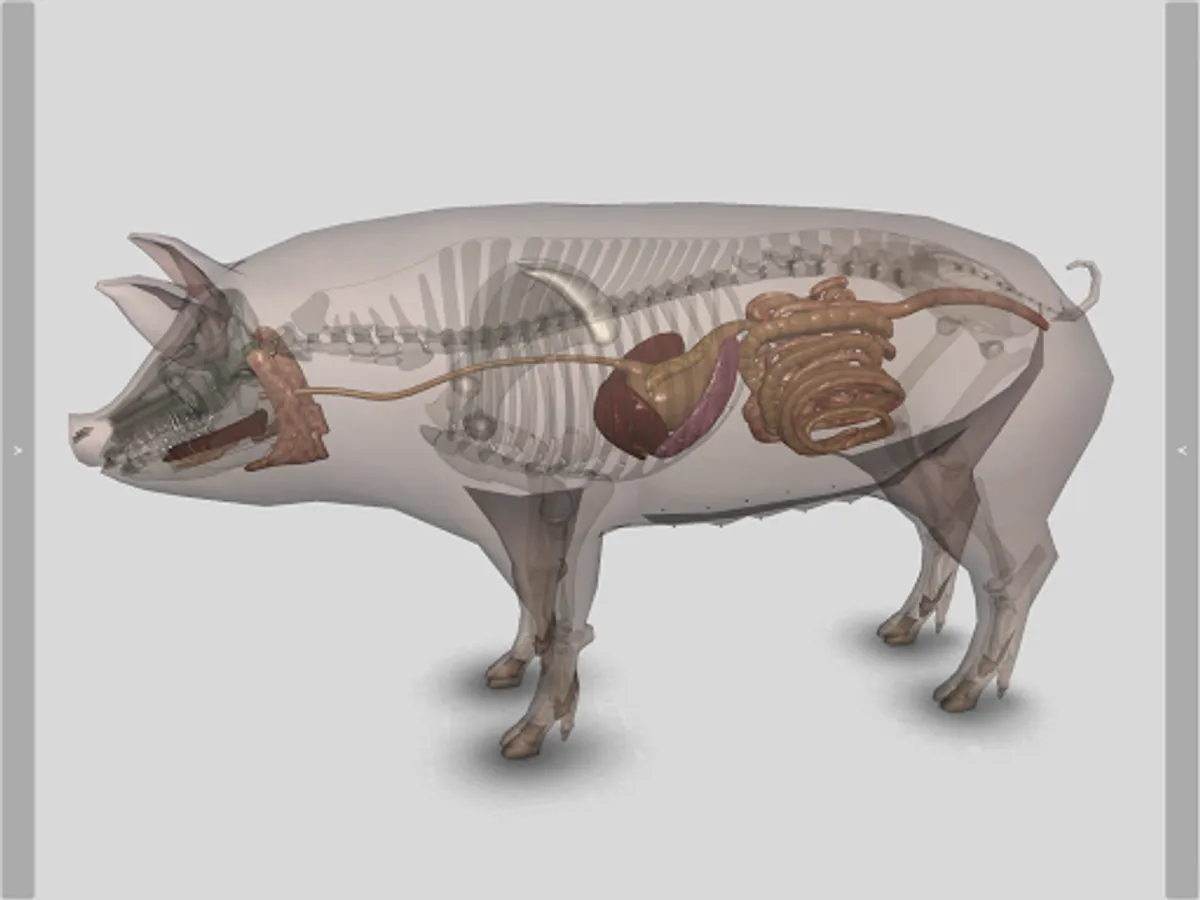The 3D Pig Anatomy App is an interactive model of a pig which enables you to view internal systems from any angle and at various zoom levels.