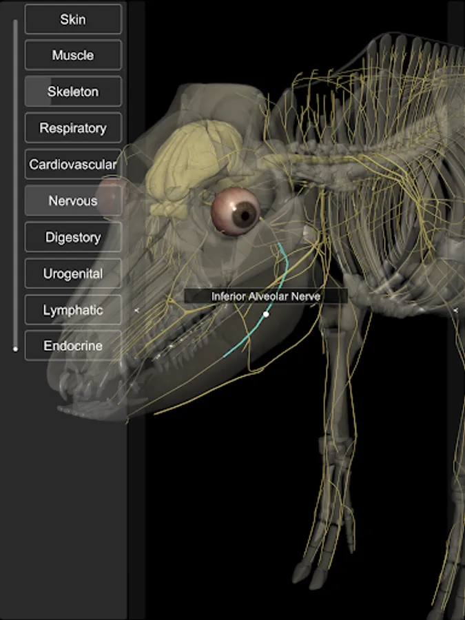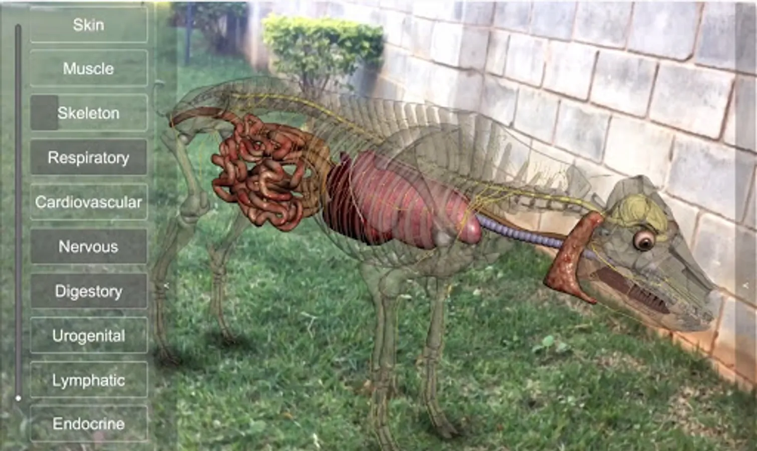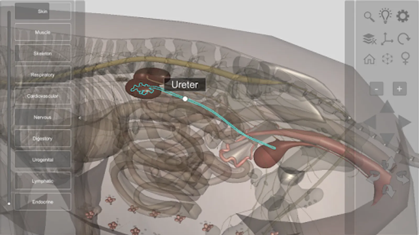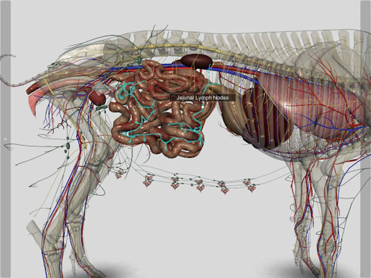 it is an interactive model that allows for the animal internal systems to be viewed and manipulated layer by layer or simultaneously with other layers, at various zoom levels. Individual anatomical structures can be highlighted and display a caption, or they can be removed to permit viewing of deeper structures.