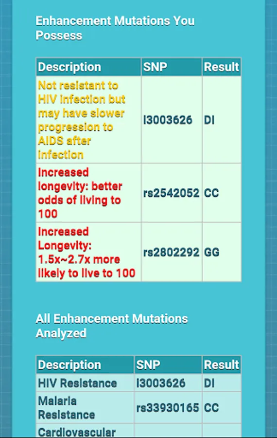• Enhancement Mutations (HIV Resistance, Longevity etc)