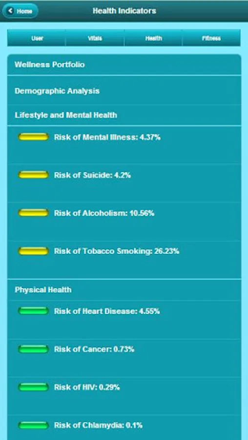 The Health Tracker wellness dashboard offers personalized evaluations on the following health metrics: