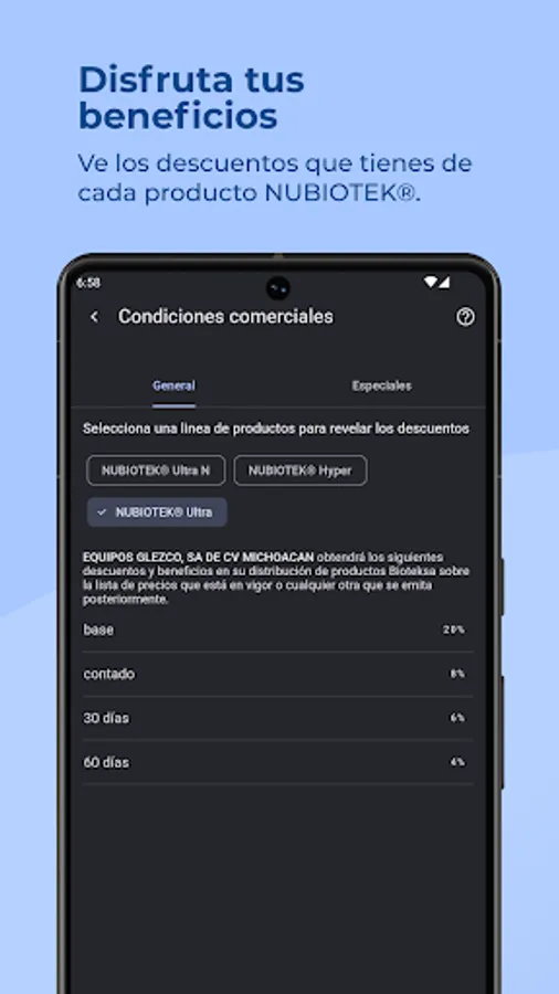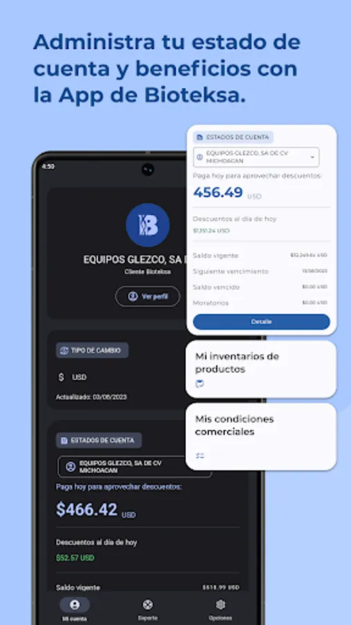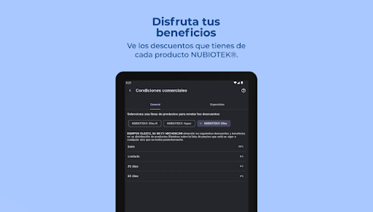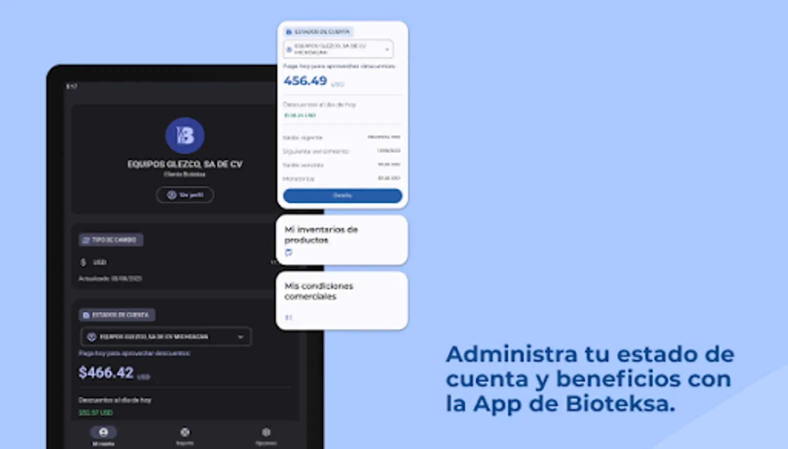 Welcome to Biotecsa! The application for Bioteksa customers that allows you to have full control of your account. It is focused so that clients can manage their account statement and see their benefits, as well as their available NUBIOTEK® products.