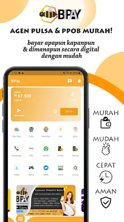 - E-money Topup Service (Dana, Shopee Pay, Link Aja, Ovo, Doku, E-toll, etc.)