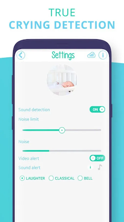 If the baby wakes up or moves, Baby Monitor immediately detects the sound and you will be informed on your device. Sound sensitivity can be set in the application settings.