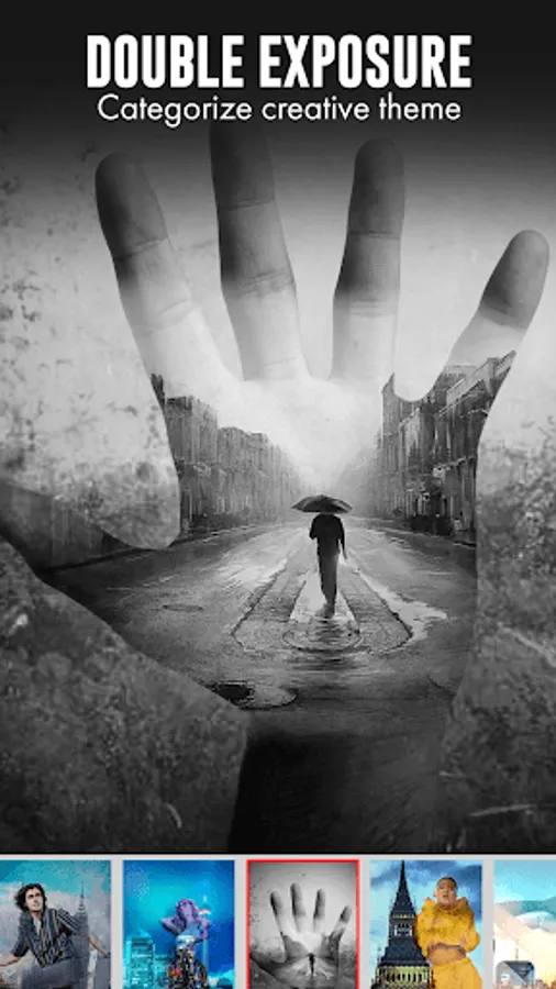 You can select the background image from various given background categories and foreground image from camera or gallery. You can change the opacity / transparency levels to blend images.
