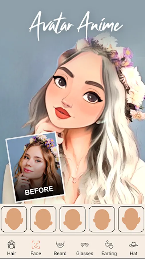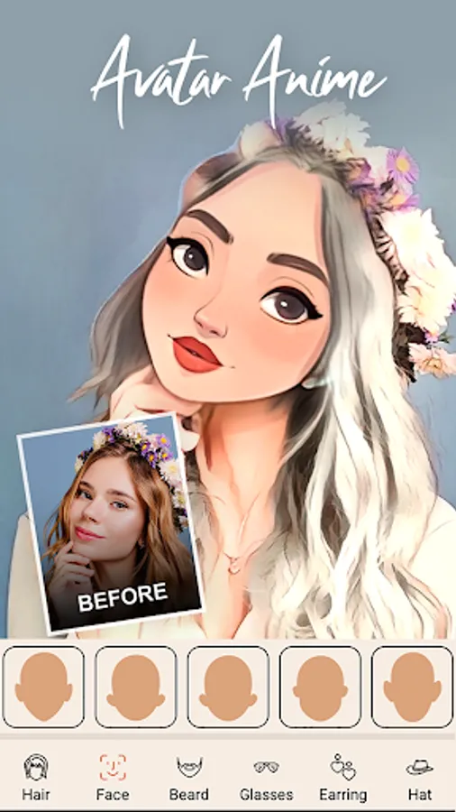 In addition to changing the face of the character, the app allows you to fashion your own unique avatar face using a range of customization options.