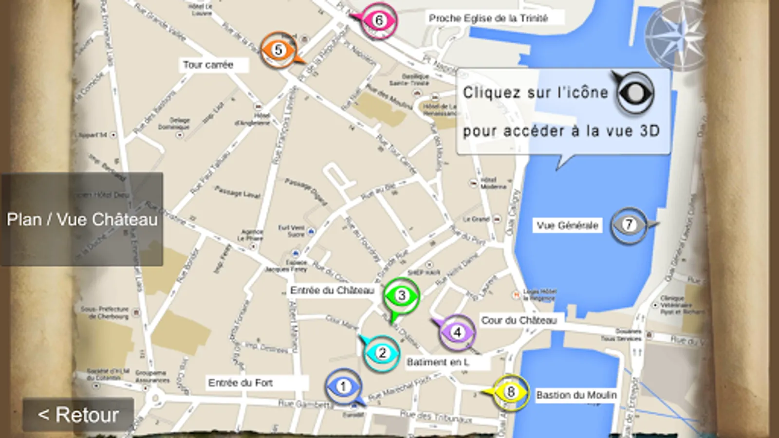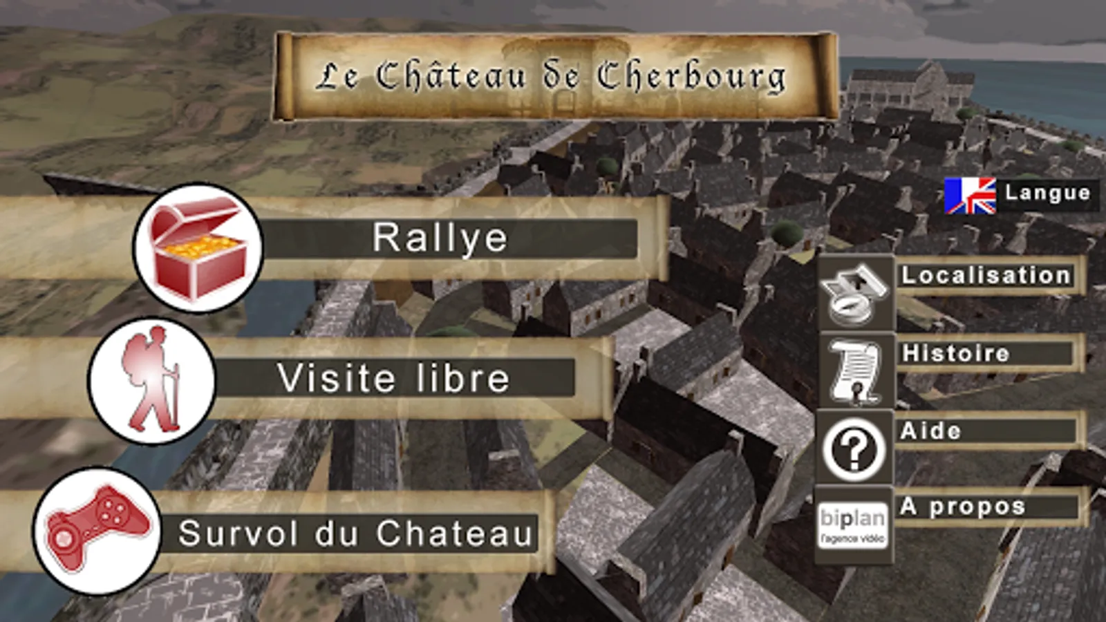 Château de Cherbourg is an application developed by Biplan Cherbourg in Relation with the Cherbourg Tourist Office. This application allows the user to immerse themselves in the ancient castle of Cherbourg as it existed in the seventeenth century through a series of panoramic views in 3D.