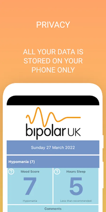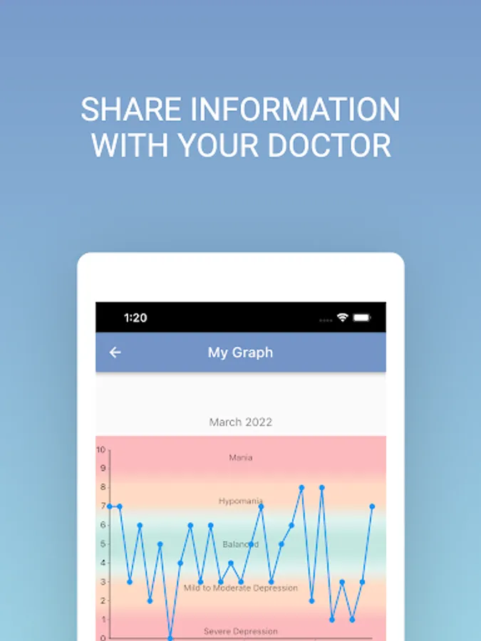 Bipolar UK’s mood tracker allows you to record your daily mood, medications and emotions. You can use the weekly and monthly overviews to:
