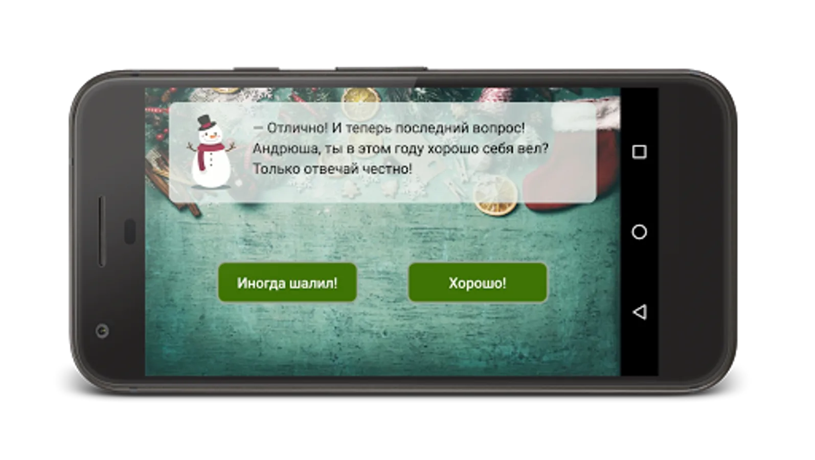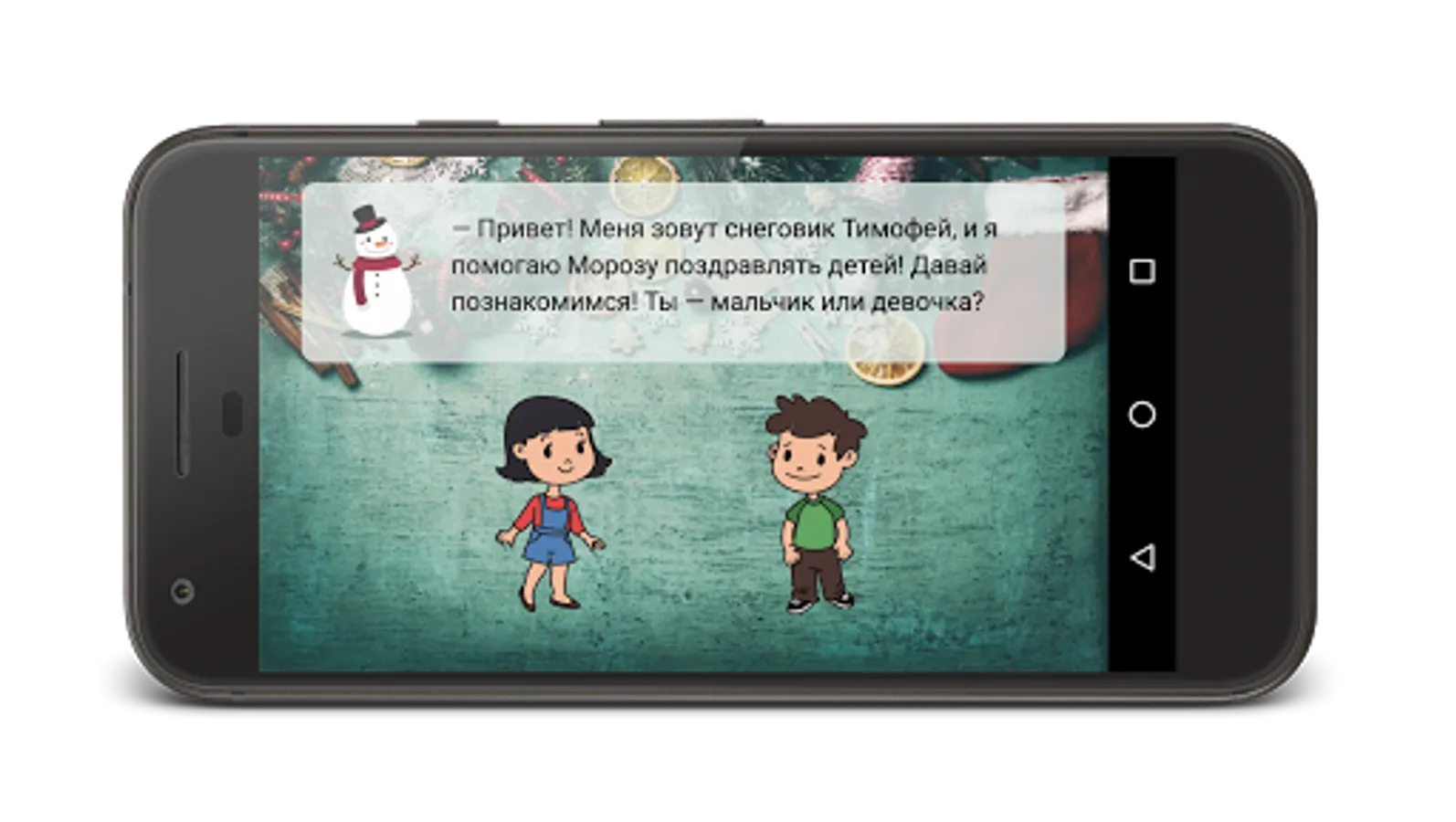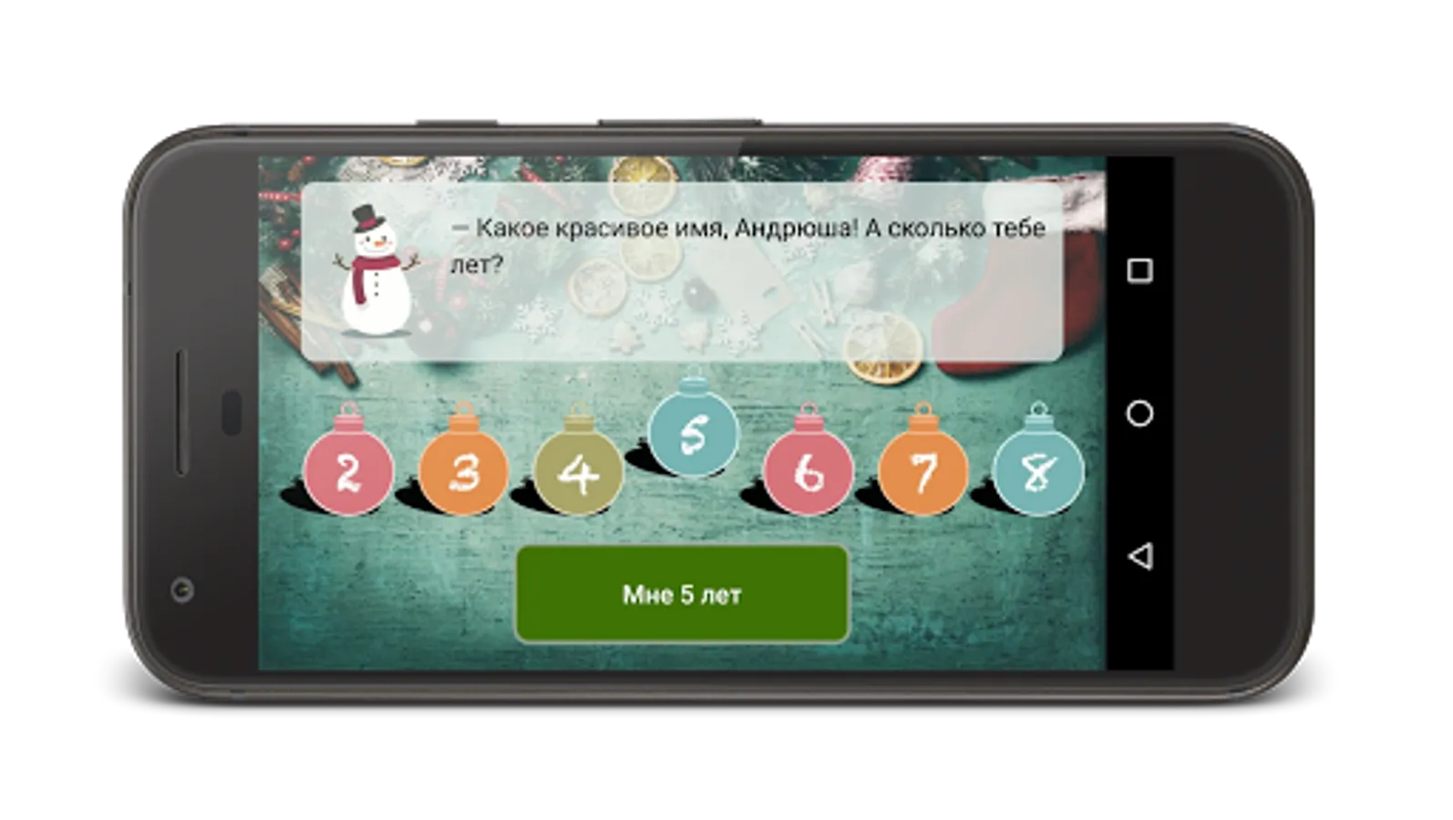 P.S. To best congratulate your child, snowman Timofey asks a couple of questions while the application is running, but don't worry - we don't save or share your answers anywhere. In a completely magical way, all this information exists only in your smartphone.