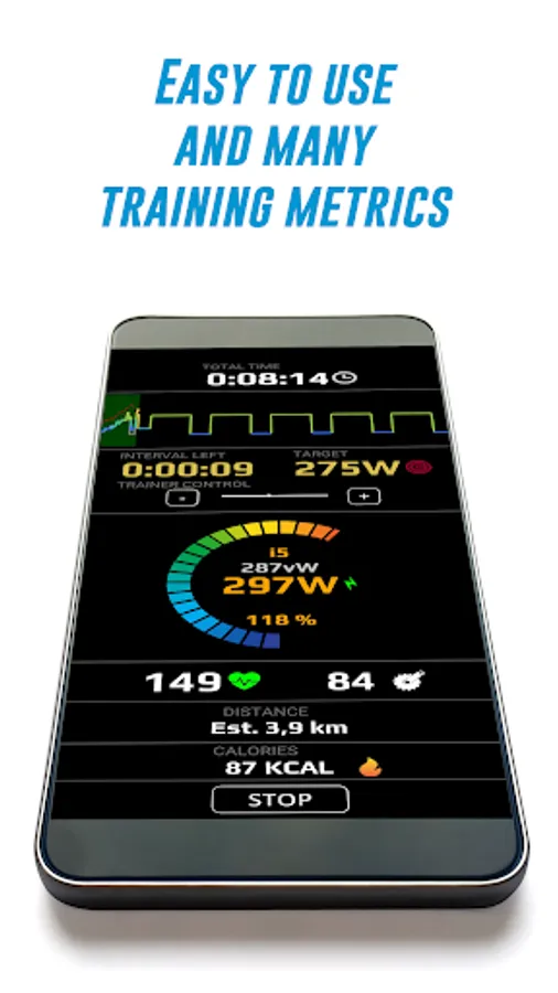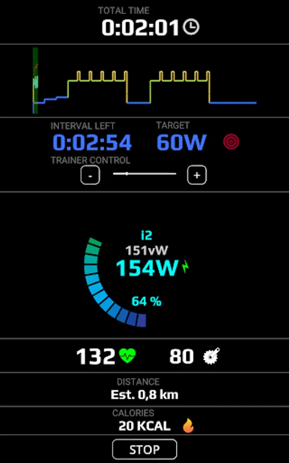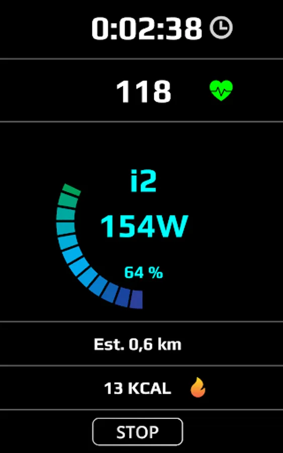 ⏱ Real time indicators such as intensity, total distance, speed, heart rate, total calories burnt
