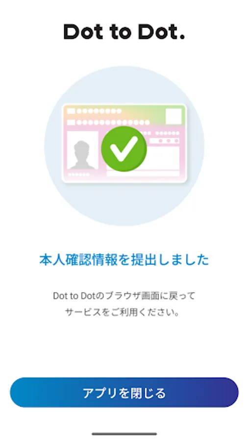 This application is a service that allows users to submit their identity verification information to the data linkage platform "Dot to Dot" operated by BIPROGY Co., Ltd. for identity verification.