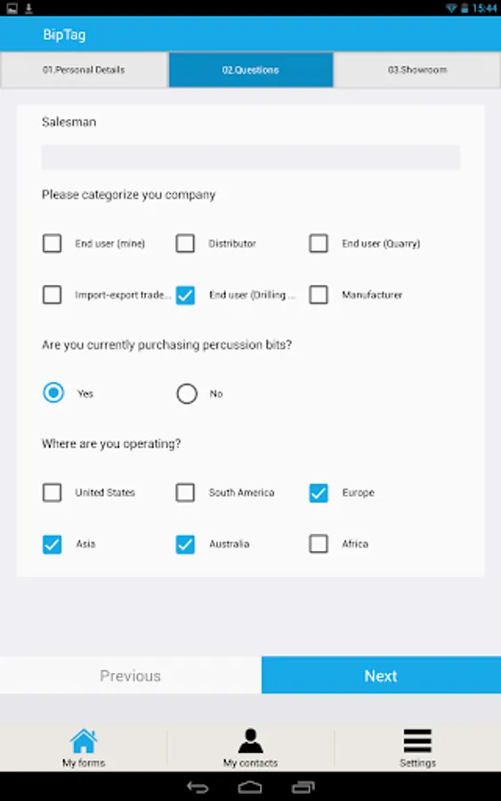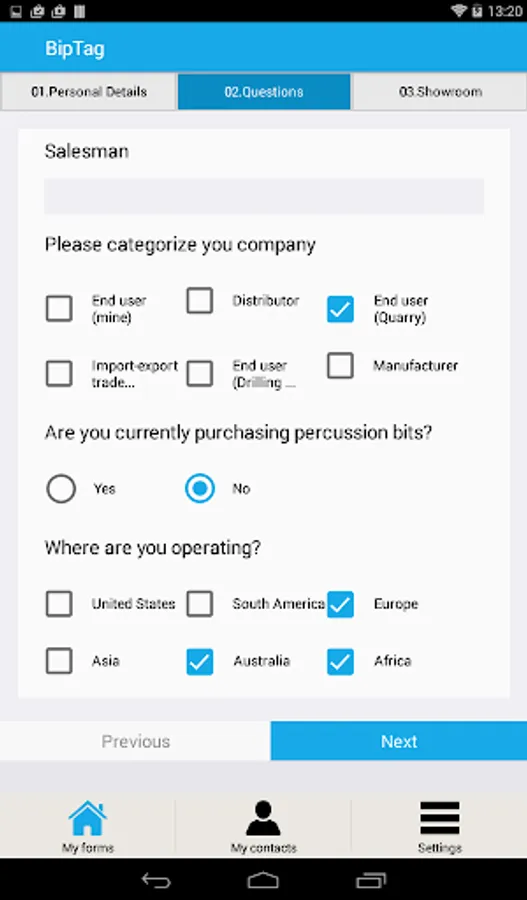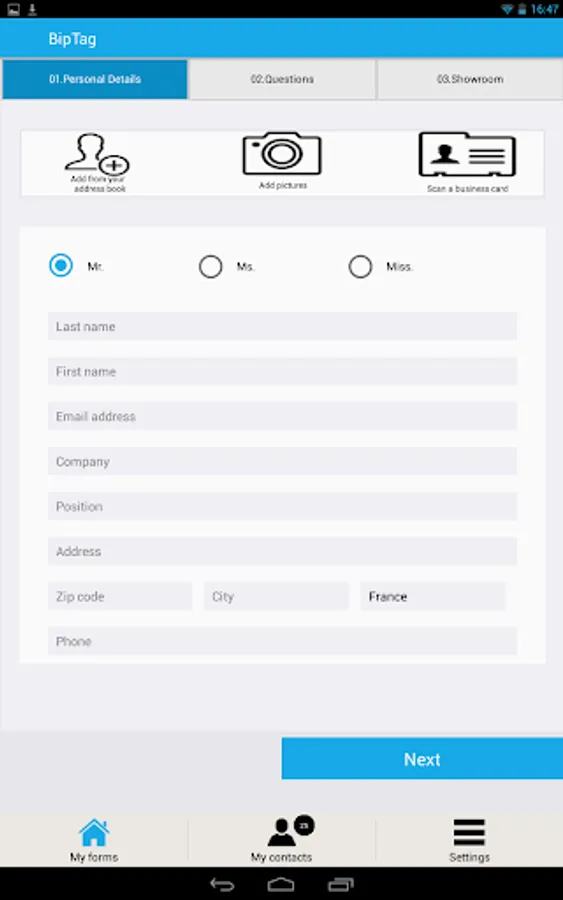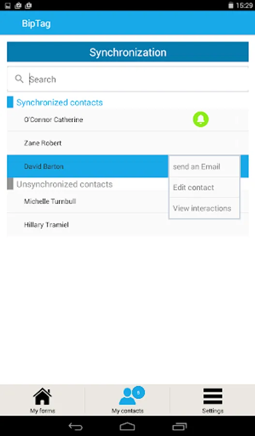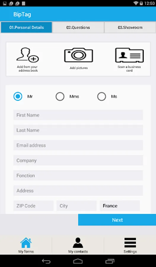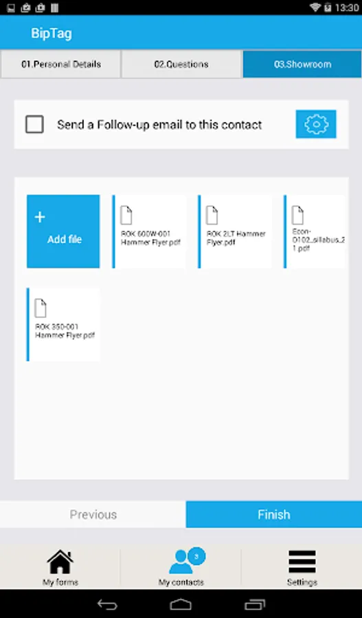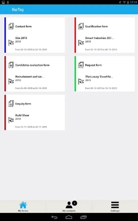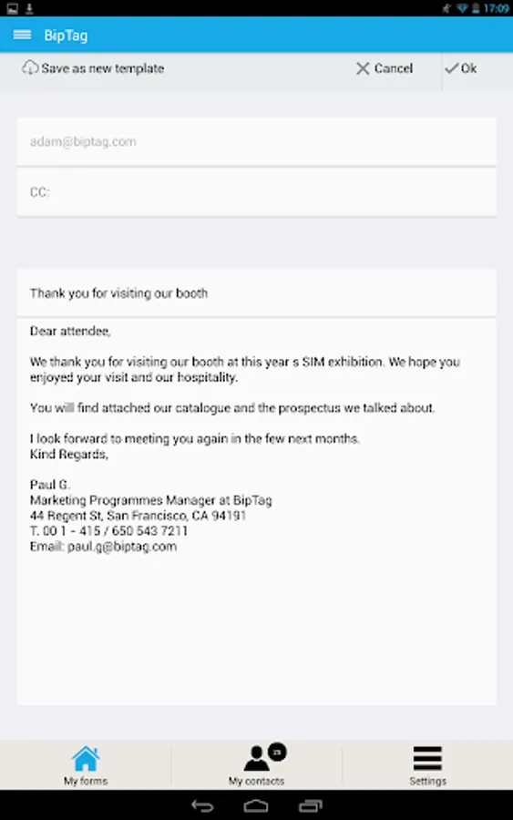 BipTag for Android helps companies have a successful trade show. Easily save contacts' information, specify their needs on forms created before the event and send tailored emails afterwards by using BipTag.