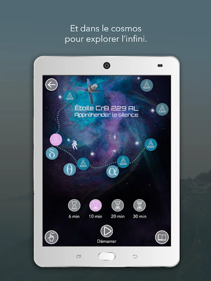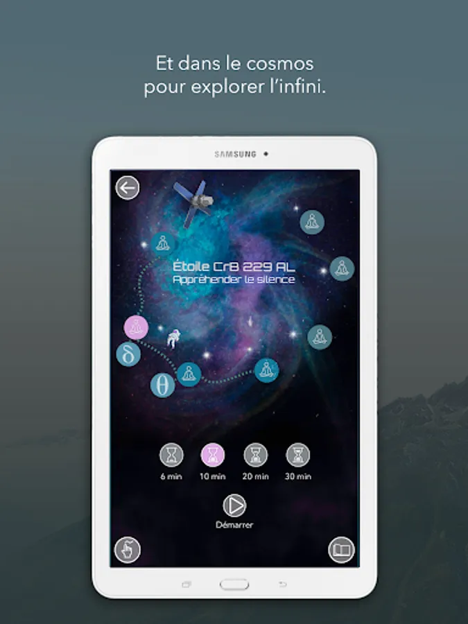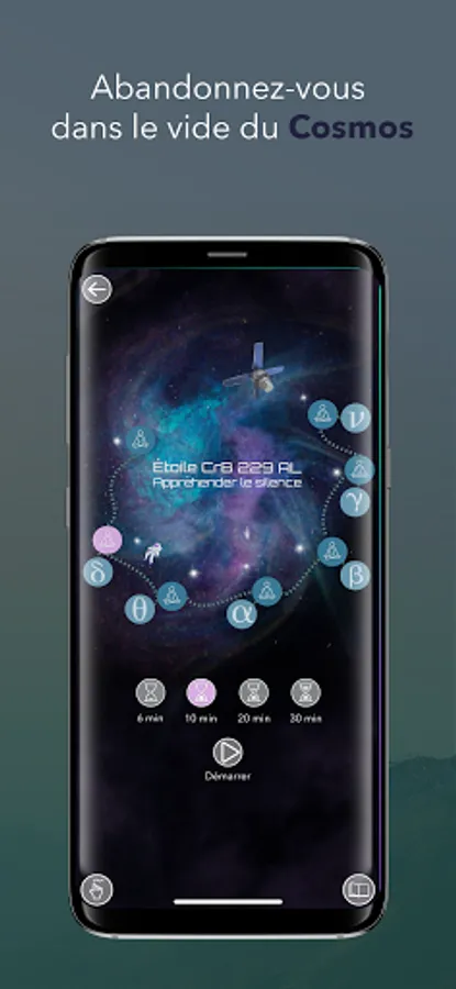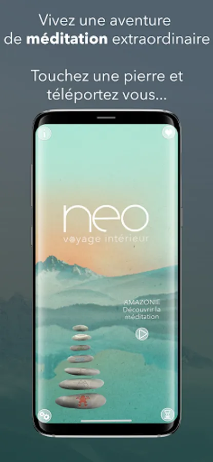 This application offers a personal, poetic and immersive approach to approach meditation differently, by combining harmony for the eyes and ears, surprises and philosophical thoughts.