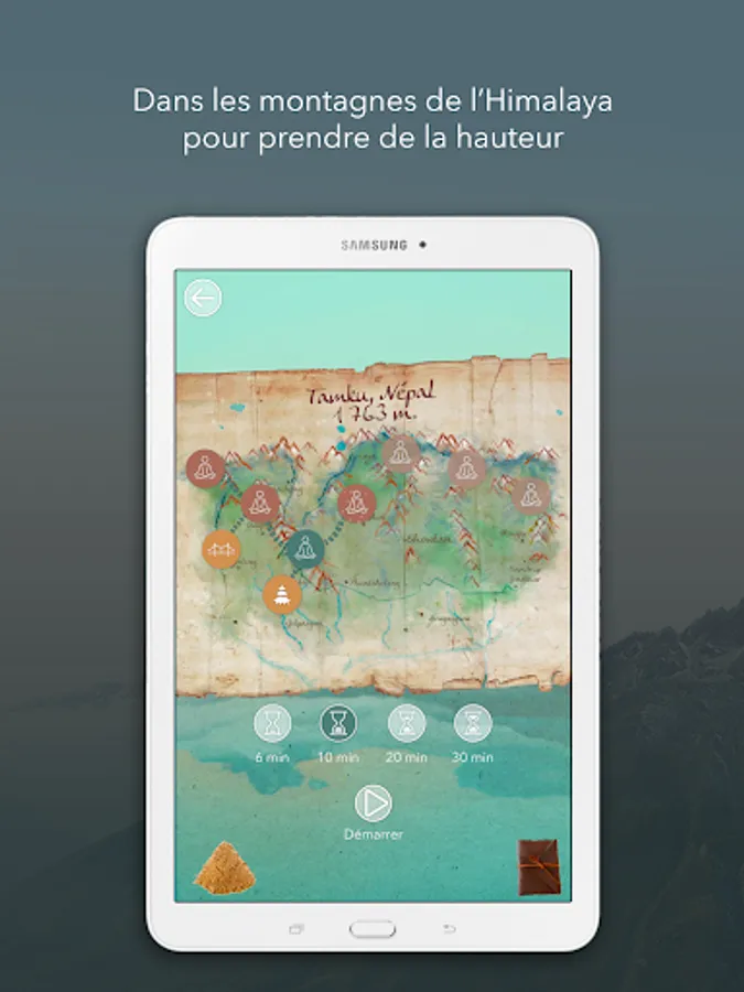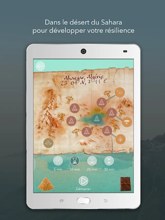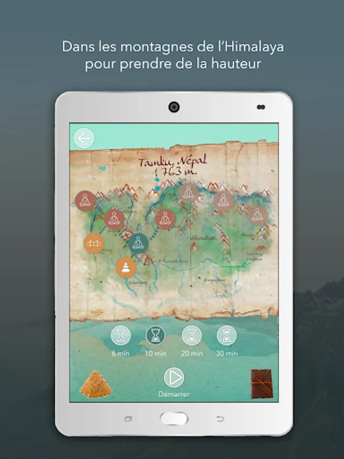 Rewards mark your journey to encourage you to continue. Dawn offers you a travel diary with sumptuous watercolors that will remind you of the places and the lessons of your meditative journey. She will also make you discover secret places where you can go to meditate quietly, without being guided.