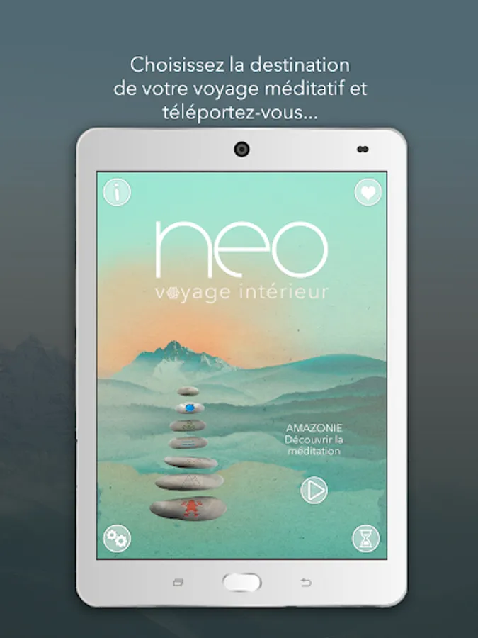 Let yourself be carried away in inspiring soundscapes, rocked by original music and guided by the voice of your guide through the whole world for an extraordinary inner adventure of mindfulness.