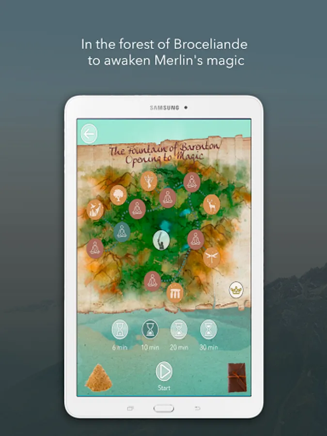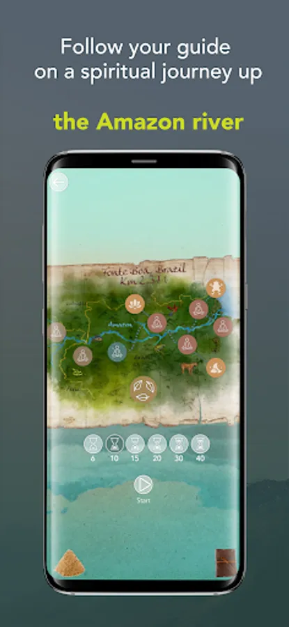 The application also contains a timer section that allows you to meditate without being guided, choosing a soundscape and a musical instrument: