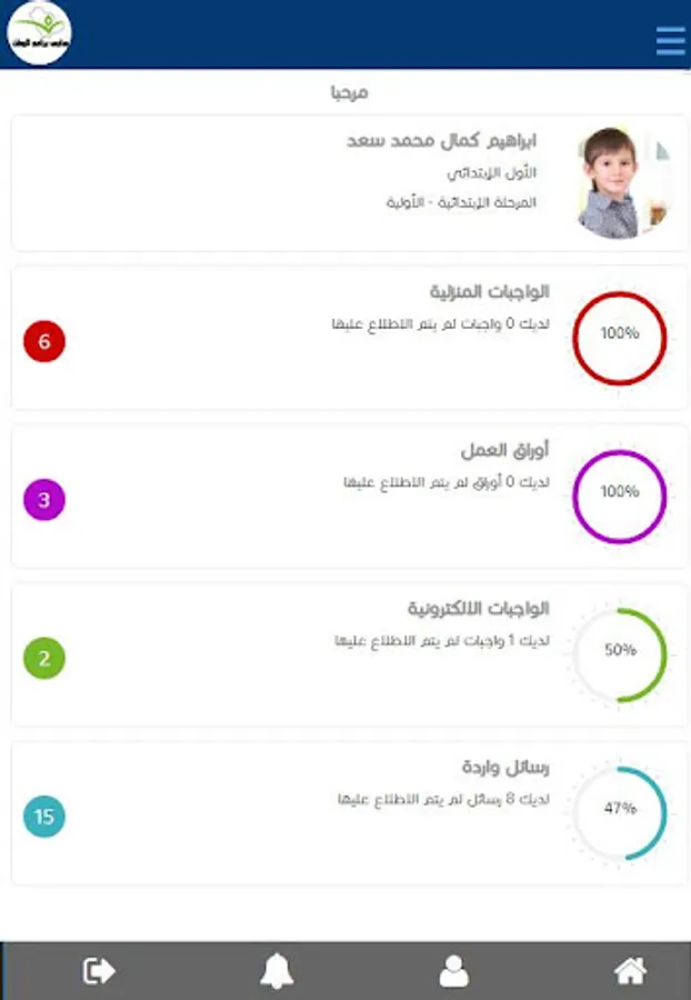 Parental services - follow-up all your children from one screen such as interactions of the school day (absence - delay - permission - to perform homework and assignments - posts - excellence - positive feedback) and follow-up tasks of his children such as (study plans and distribution of the curriculum - assignments and worksheets - electronic assignments and student degree In each duty) as well as obtaining academic and behavioral report throughout the school day and many distinct services, in addition to the possibility of communication with the school through complaints and academic feedback.