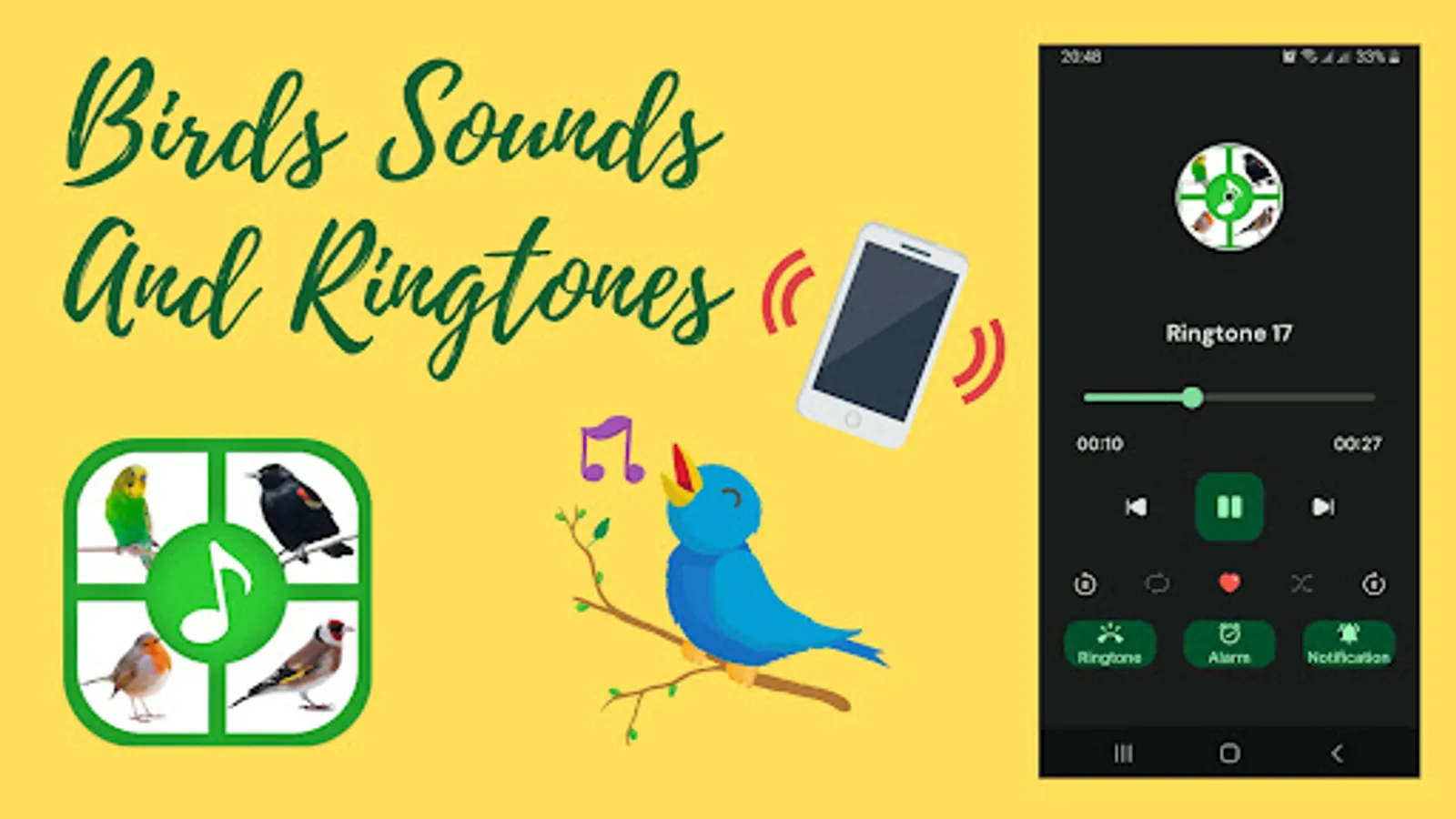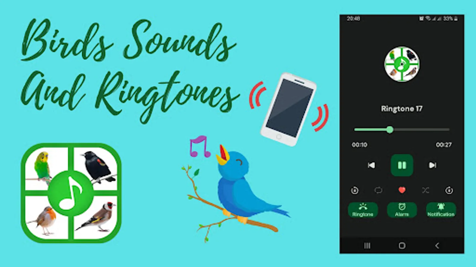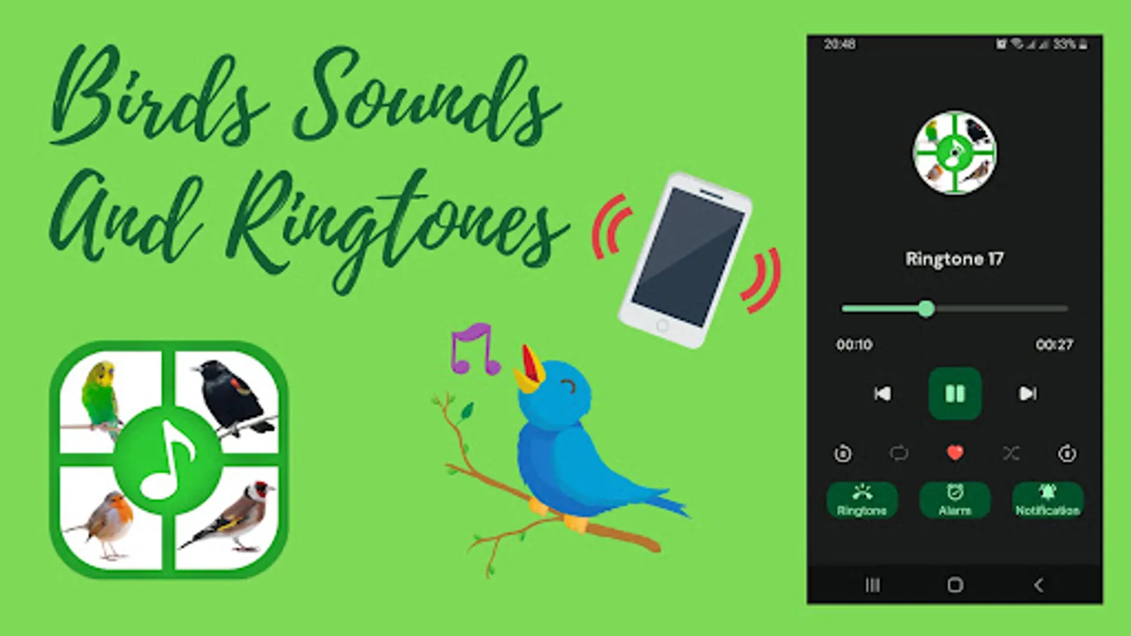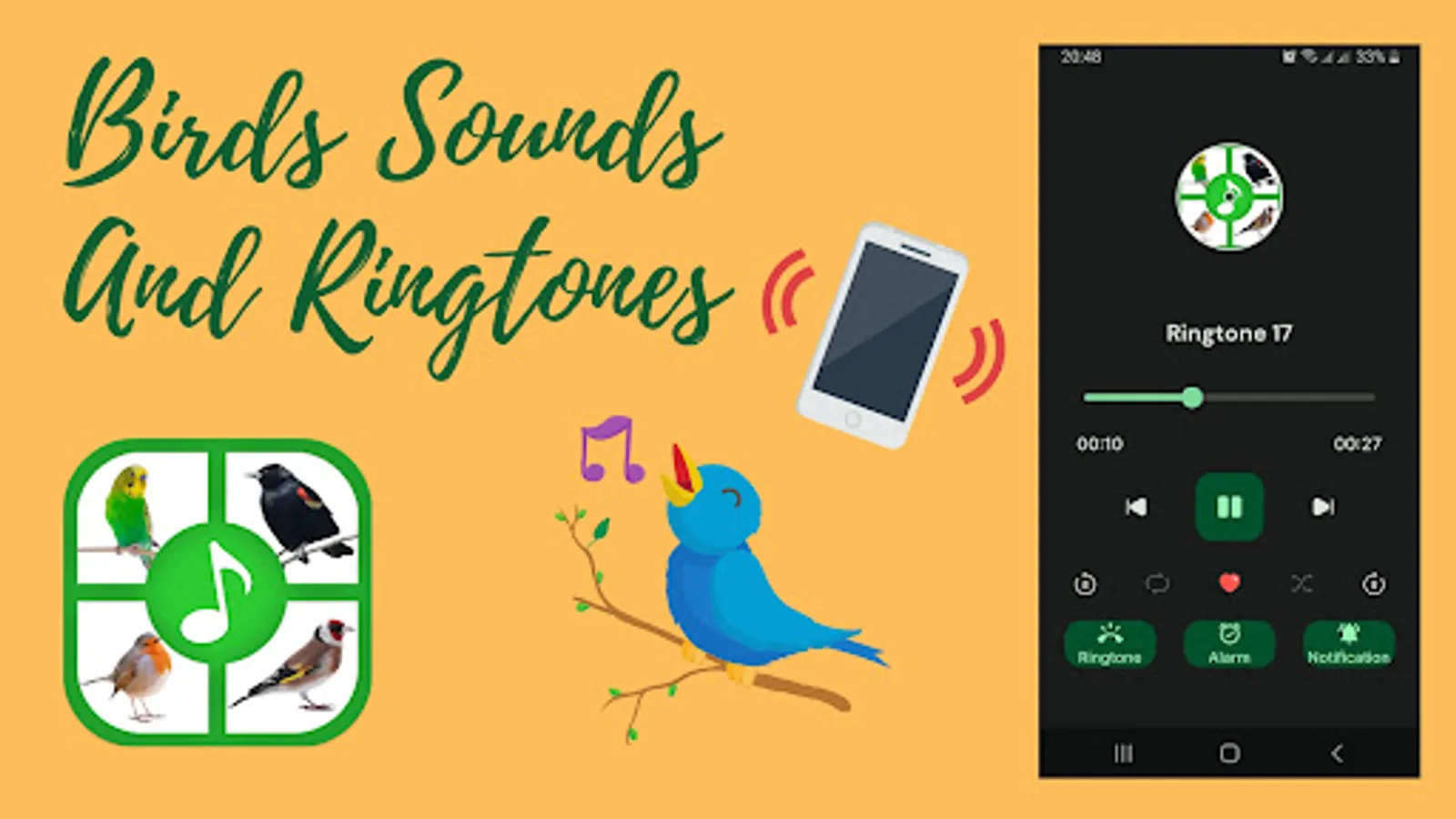 Enjoy the sounds of nature ! Set a bird ringtone as an alarm , notification sound or an SMS sound and feel like you are in the woods far away from the noise of the cities . Use these bird sounds to help you sleep . Different bird sounds and songs can be an alternative way for you to relax and get away . Get your birds sounds and ringtones app now and let the songs of birds express how you feel !