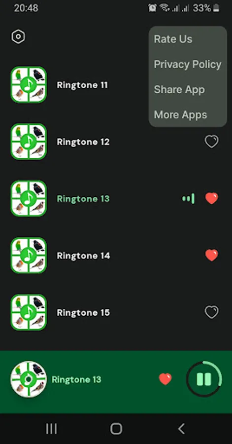 Open this best free birds sounds ringtones application , you can press the Play button to listen to the MP3 birds ringtones .