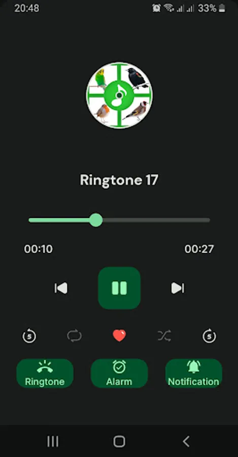 If you like one of the MP3 birds ringtones you can set it as your default phone ringtones , alarm or notification .