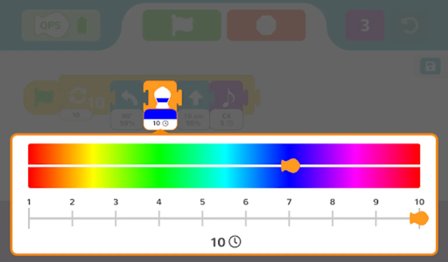 - Level 2 introduces parameters by providing sliders that can be used to adjust what each block does. For example, a slider in the turning block adjusts how far the Finch turns.