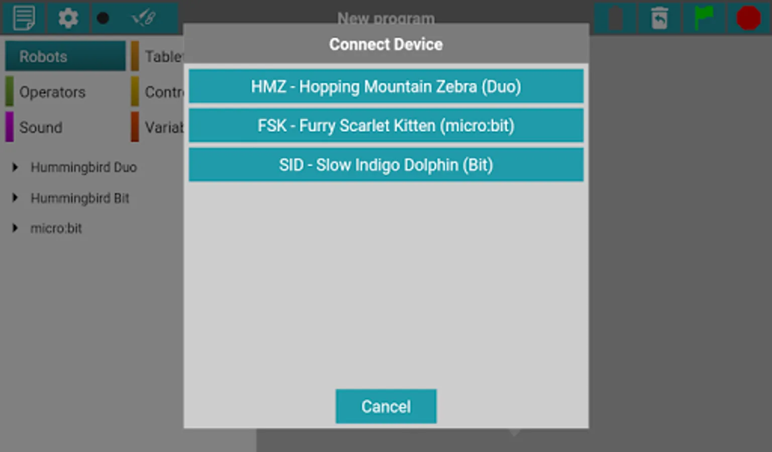 * Each robot connects to the app via Bluetooth BLE. Make sure to load the Bluetooth-ready firmware onto your robot. You can find instructions by selecting your robot at birdbraintechnologies.com/portal.