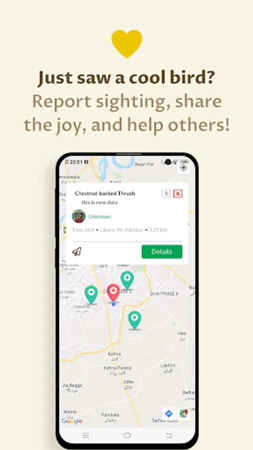 - See details of bird sightings such as user-uploaded photos, number of birds seen, and location of the sighting