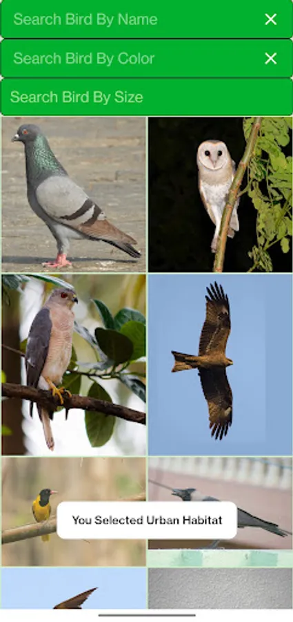The app allows effective bird identification using size, color and habitat.