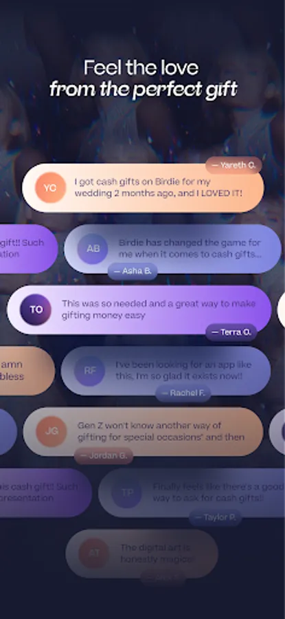 Register your next big life moment with Birdie – and get cash gifts to spend however you want. Whether it’s for your honeymoon, baby fund, or birthday registry, cash is good for every occasion. We don’t charge any fees to create your registry or receive gifts, so it’s all green from here. Share your registry via text, email, or link to your custom landing page. Your guests can send their love and you can send your thanks, all within the Birdie app.