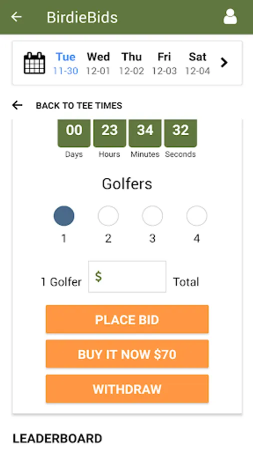 With BirdieBids, you can bid on auctioned off tee times at available courses. This presents opportunities to play for less than the market rate, and coveted "prime time" tee time slots are up for grabs.