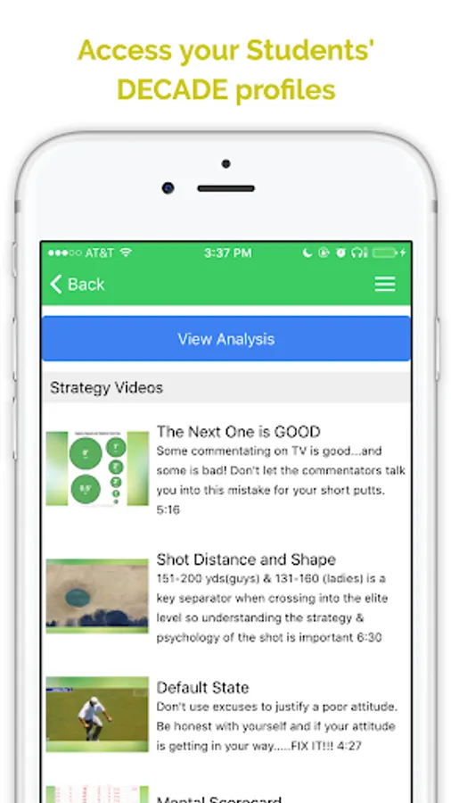 Also, unlike other tools on the market, DECADE will constantly bring you fresh new video content on a weekly basis, due to work with our PGA Tour players and top college programs.