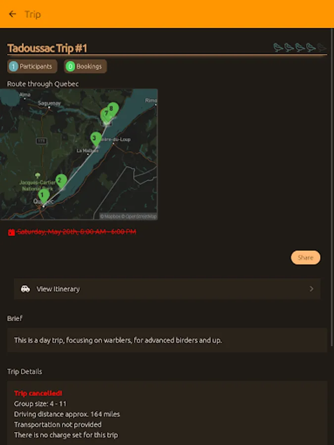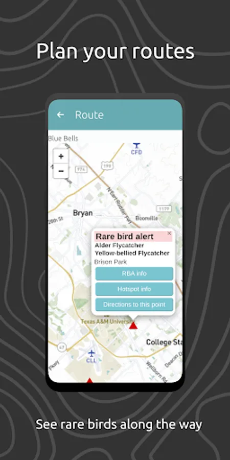 -Routes, Itineraries, and Trips: Create and share birding routes, with the app displaying rarities from eBird near your chosen route! Utilize the itineraries feature to design routes and schedule multiple trips, while keeping track of all your planned adventures on a convenient calendar. Don't forget to invite your friends to join you!