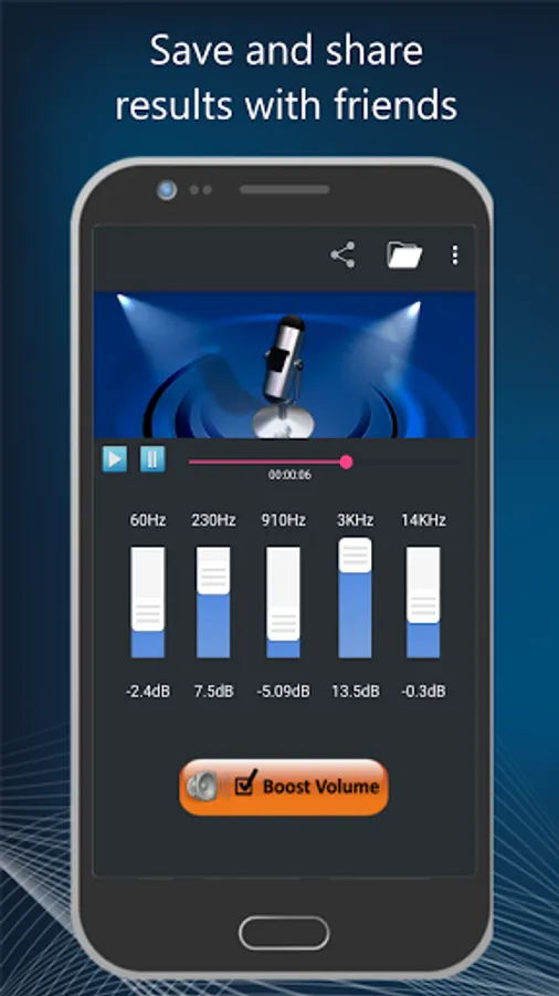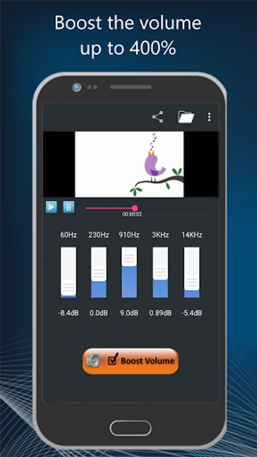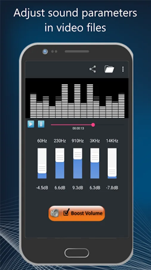 Video Sound Equalizer is a simple apps that let's you modify audio parameters in every video file. Then you can share the result files with your friends.