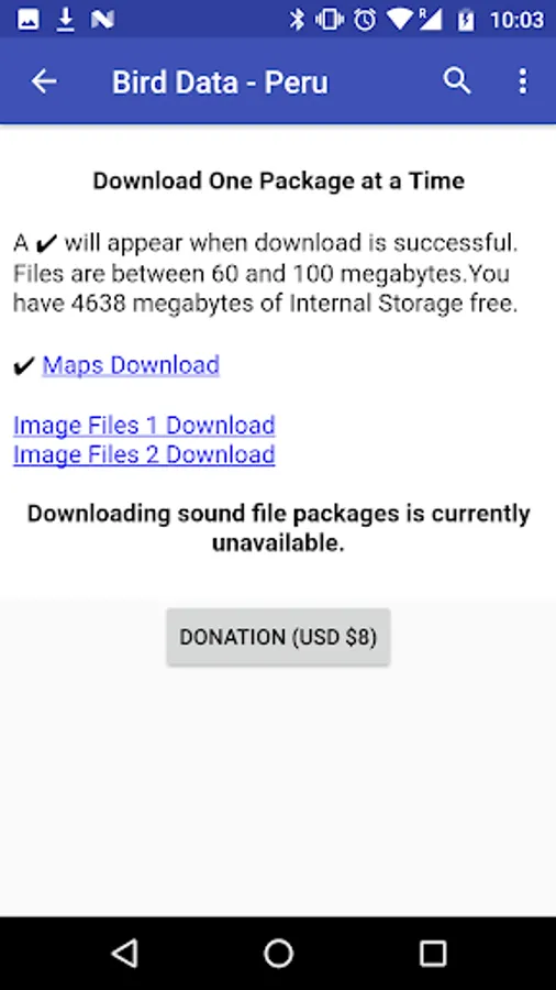 Media (images and sounds) can be downloaded individually. Photos and maps and sounds (new) can be downloaded in bulk. Bird species can be navigated through taxonomy or native language (English or Spanish).