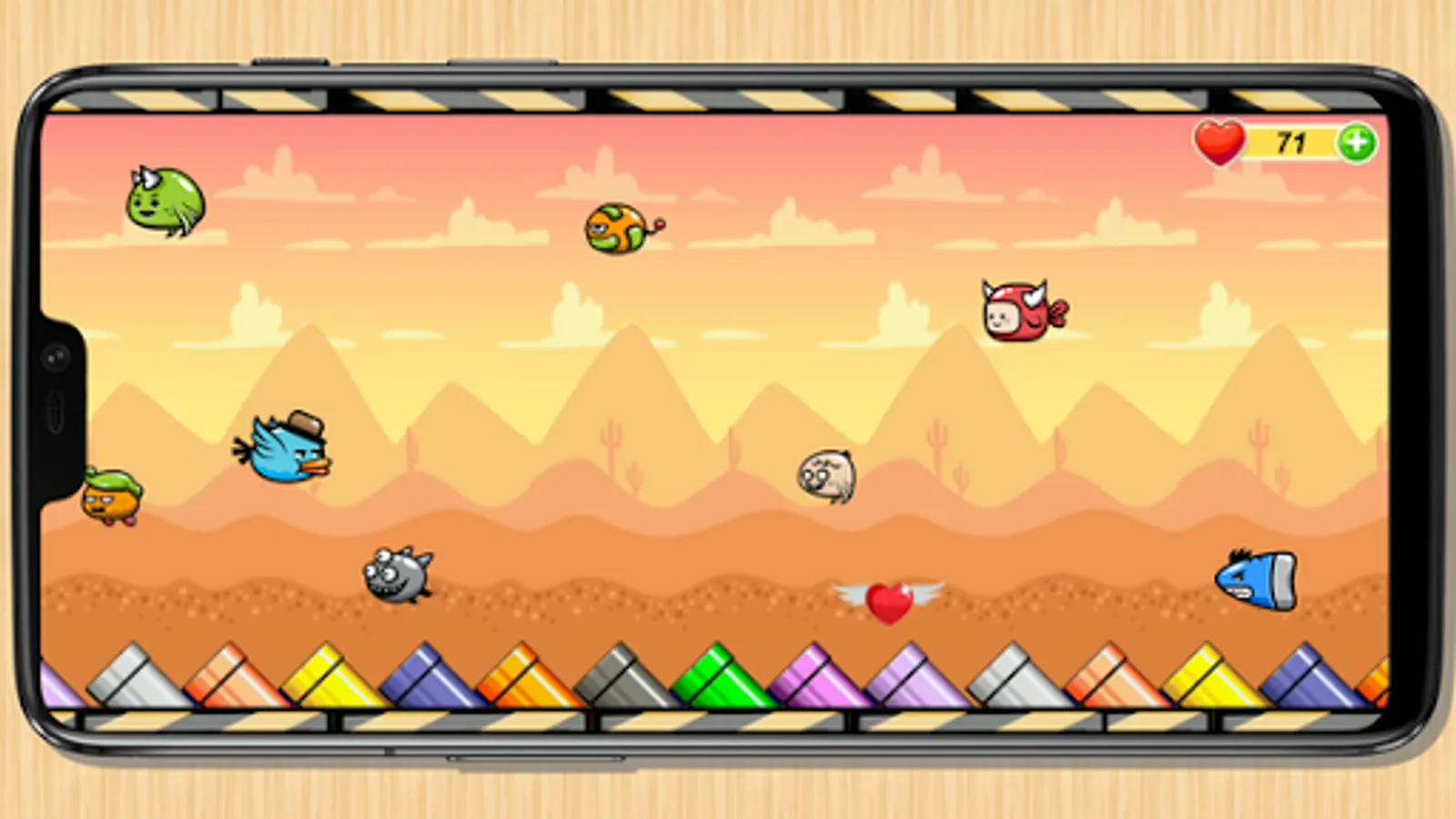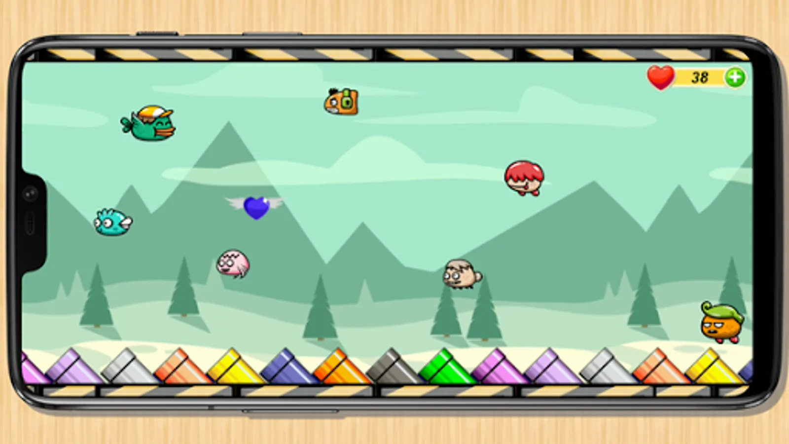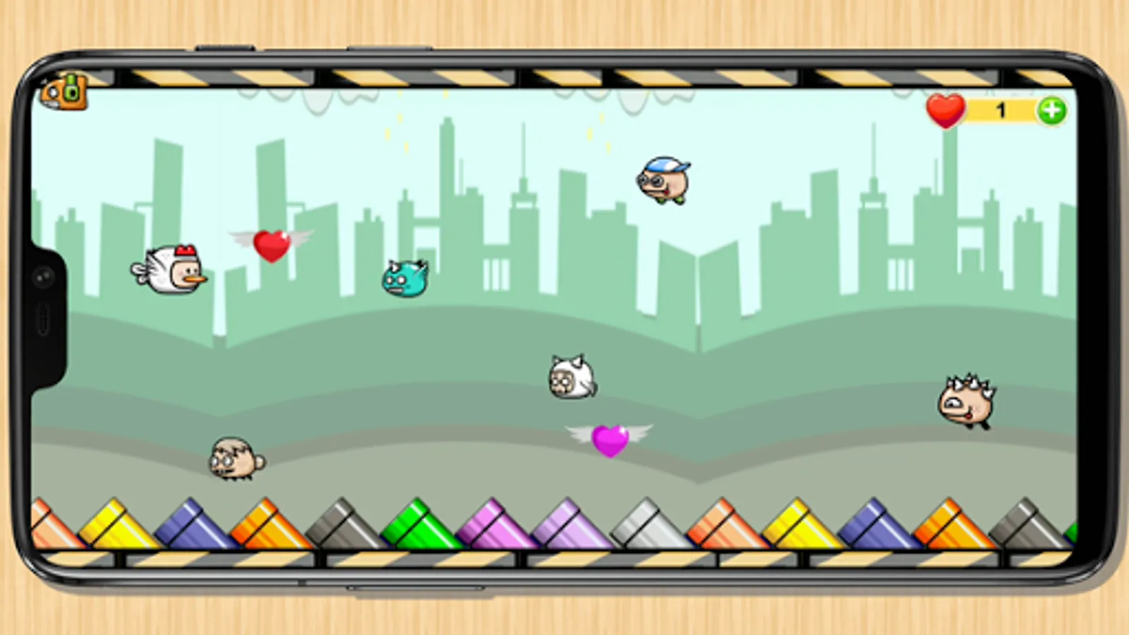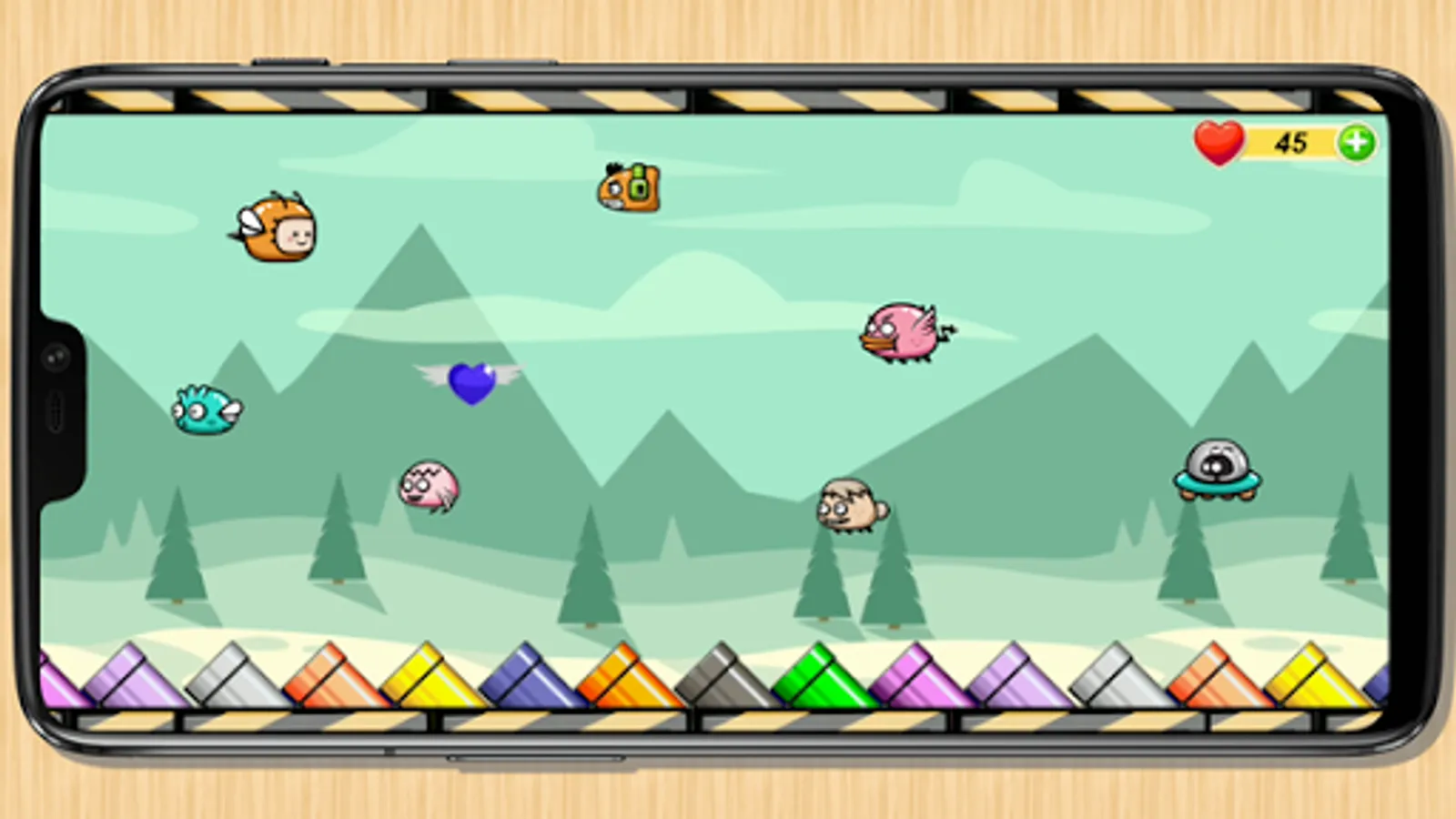 Collect as many flying hearts to get the most points.