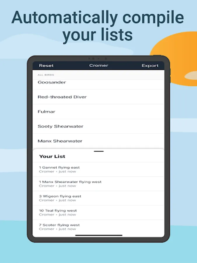 The original seawatching app. Record your sightings, share them via WhatsApp with fellow birders, and download & compile daily lists. Log species, flight direction and numbers all in one place. We make recording easier so you can focus on the seawatching.