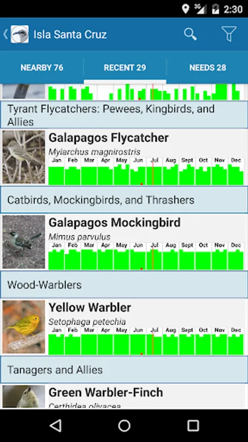 -- find recent sightings and bar charts of seasonal abundance for all birds