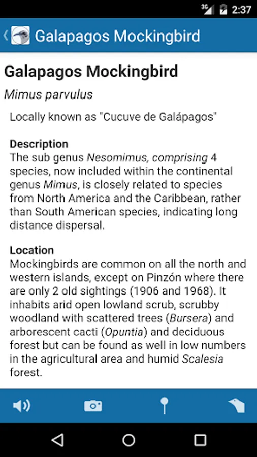 -- see photos, sounds and text for all the birds of the Galapagos Islands