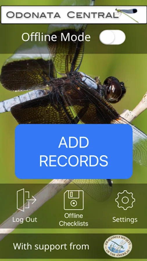 This is a helper app for the Odonata Central website. You must have an Odonata Central account and you can register for one from the app or the website.