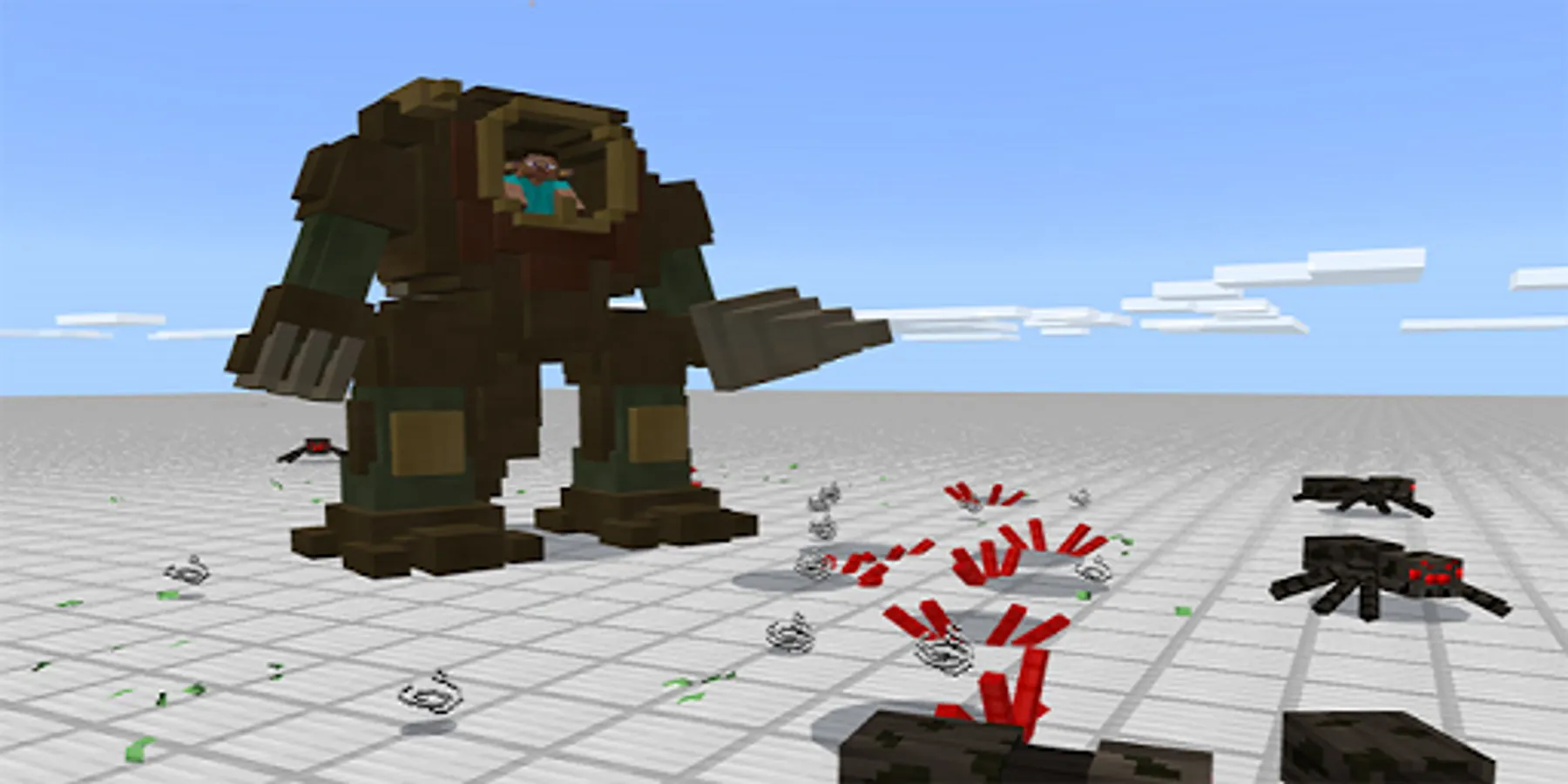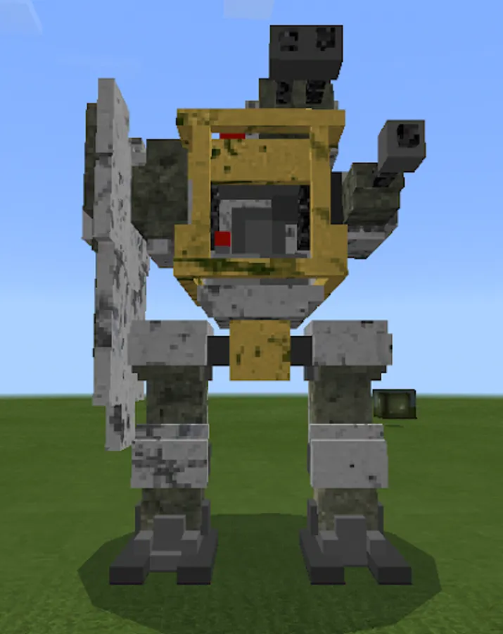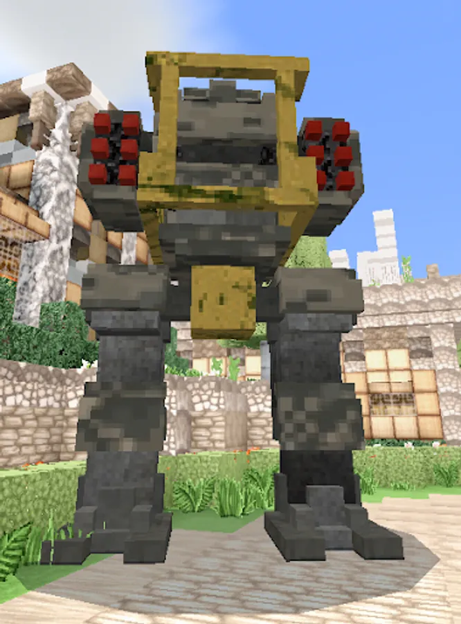 Let me introduce to you, War Robots This addon adds many robots to the game. You can play with your friends or you can play it alone on survival gamemode against the enemy robots that controlled by other mob (in this case i use pillager as the rider of enemy robots).