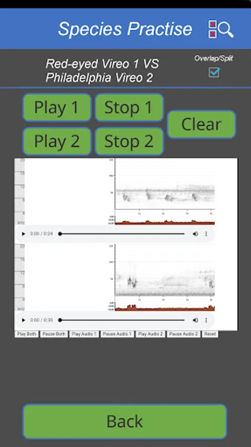 Bird Vocs is an app to practice bird vocalizations. It connects to xeno-canto.org, and lets you use recordings from that website on your mobile device. Bird Vocs also draws the spectrograms (if available), and gives you the capability to compare two spectrograms overlayed or next to each other.