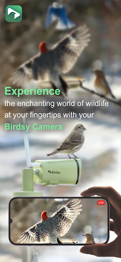 Attention: The BirdsyCam app is exclusively compatible with a Birdsy Cam. The app allows you to install your Birdsy Cam, configure your camera settings and provides you with easy mobile access to your Birdsy Cam's livestream and videos. To watch videos and livestreams of other Birdsy users, visit BirdsyTV on Birdsy.com. For daily clips follow Birdsy on social media.