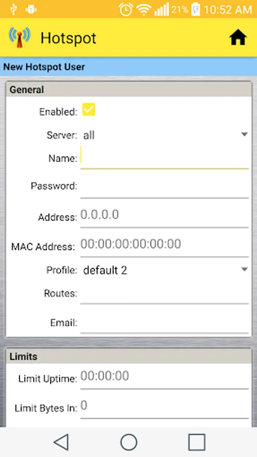 * Hotspot -> User -> Name