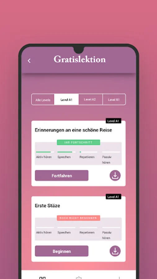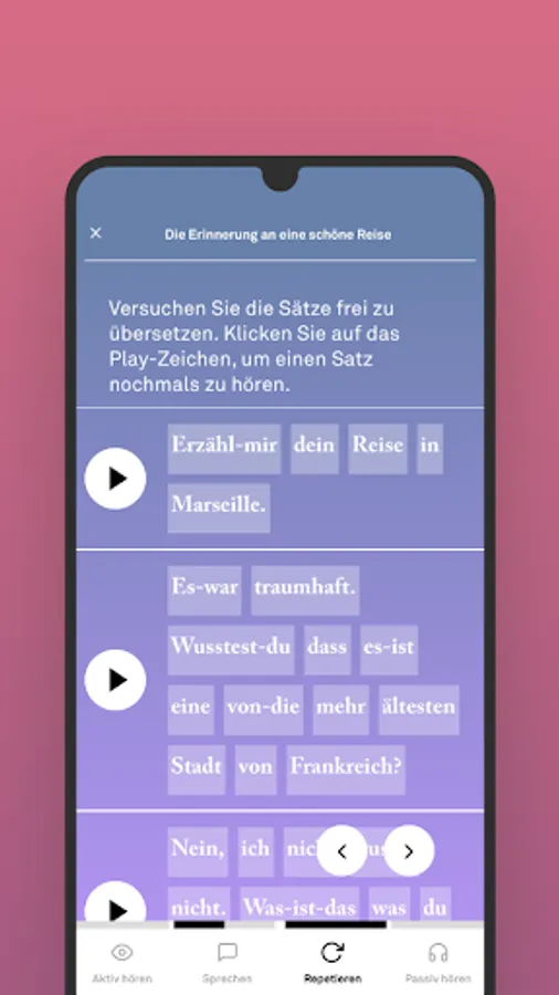 You hear a lesson in the background while you focus on other activity, such as Sport or housework.