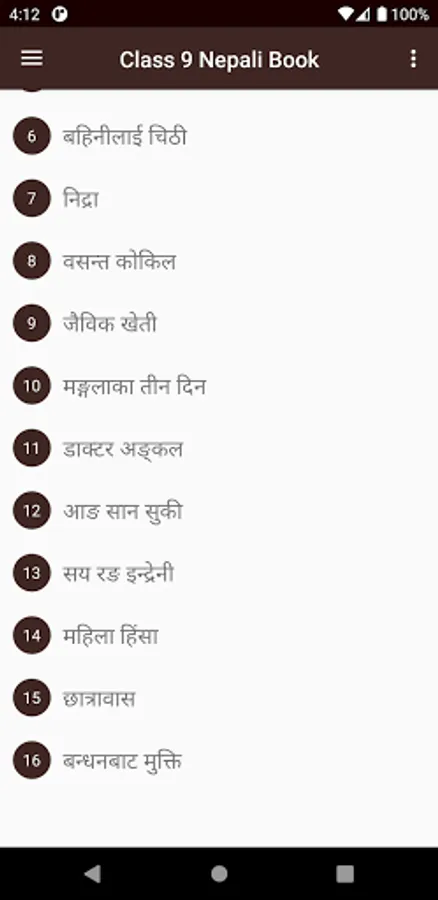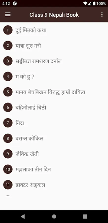 This app is the offline book of Nepali subject of class 9. It contains all the lessons of the Nepali and the book is of the latest version as provided by the curriculum development center of Nepal.