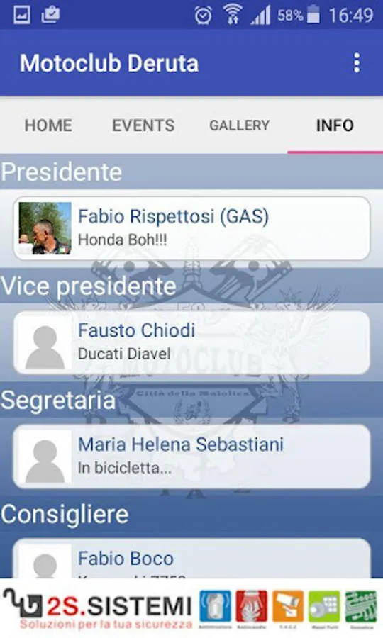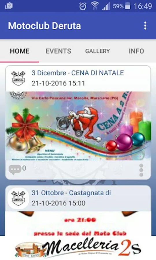 The app allows all members and fans to stay up to date on activities, meetings and events of the Moto Club Deruta.