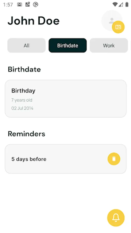 Personbook reminds you for big life events like job anniversaries or meeting anniversaries.