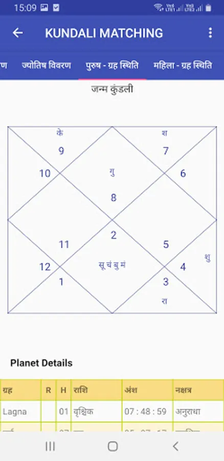 • Match Making Details in both Hindi and English Language